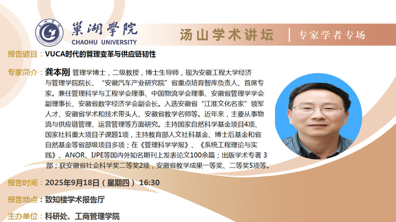 • 9月18日:安徽工程大學(xué)龔本剛教授講座